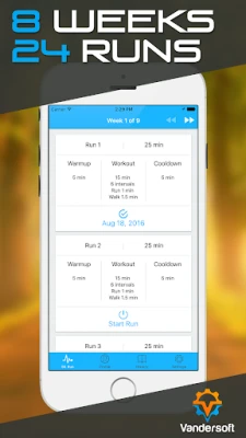 Take your device with you on your runs! Listen to your favorite music and get prompted over your headphones to run or walk. Your entire 5k run will be directed through your headphones or speakers.