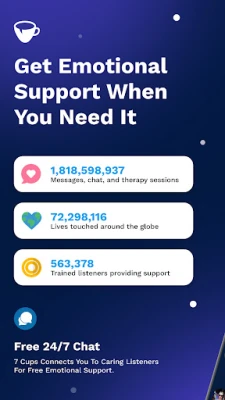 Join millions who trust 7 Cups for emotional wellness. Download today and start feeling better!