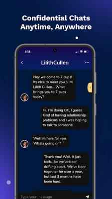 Feeling overwhelmed, anxious, or stressed? Struggling with depression, loneliness, or relationship issues? 7 Cups provides a trusted space for mental health support, professional therapy, stress relief and emotional support from experts—right from your phone. Whether you need licensed counseling sessions, peer support, mental health services, talk therapy, advice or mindfulness exercises for anxiety and depression, we’re here to help with evidence-based practices and emotional guidance.