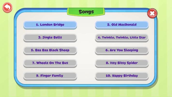 ABC Piano is a music game for kids of 1 to 6 years old. The application has 3 modes: Instruments, Songs, Animals Sound.