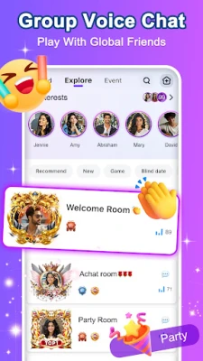 24-hour live voice party, easily find people from all over the world to make friends.