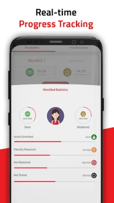 Wordbot focuses on building your vocabulary by using GRE words with mnemonics, providing synonyms, antonyms, and usages of words in context. It also gives you GRE English practice and helps you master words, through seamless revision and tests after learning them.