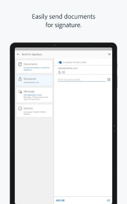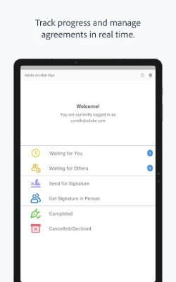 This app is a mobile companion for the Adobe Acrobat Sign e-signature service. With it, you can e-sign documents and forms, send them to others for e-signature, track your documents and get signatures instantly with in-person signing.