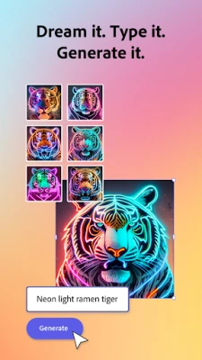 Create stunning images, text effects, and more from just a description with generative AI.