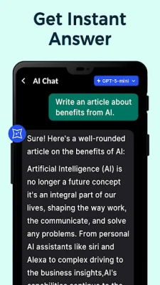 Unlock productivity with our AI assistant app and smart chatbot – powered by cutting-edge advanced AI technology. Whether you need quick answers or creative brainstorming, our intelligent AI assistant gets real work done using premium AI via official API.