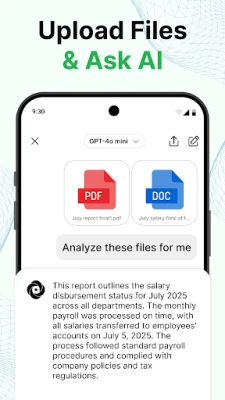 Upload any file and let AI Chat summarize, translate, or explain its content. Ask questions about the document directly and get clear, smart answers.