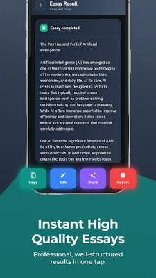 AI Essay Generator app is a learning aid, not a cheating tool. Use outputs as references, outlines, or first drafts. Your prompts and essays stay on your device – we never sell data.