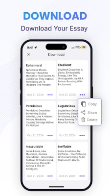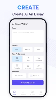 The AI Essay Writer App lets you create unique and informative essays in just seconds. You can generate essays of various types and lengths, customized to match your specific needs quickly and efficiently.