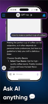 The AI assistants can help to creates blog posts, ads, social content, essays, poems, code & rap. Instant grammar fix, translation, email drafts, programming help — all via AI models in one AI app.