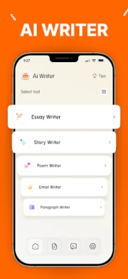 ❖ Open the AI Writer app. There you’ll see multiple AI writing tools.