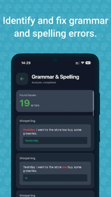 • Grammar and spelling correction with one-click fixes