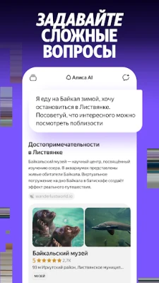 Ask questions, write and edit text—the Alice AI neural network responds accurately and comprehensively, and can enrich answers with images and source links. Speak by voice or type in chat.