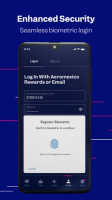 Profile In your new Aeromexico profile, you'll be able to see your points, easily access your Aeromexico Rewards digital card, and manage your preffered payment methods all in one place.