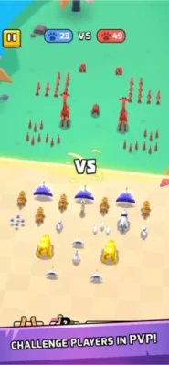 Take the auto-battle sim genre and add a splash of ridiculous by adding dozens of cute and vicious animals to the fray! Pack your animal army with lions, dogs, bears, and more before sending them into battle to win gold and glory in Animal Warfare.