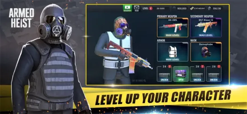 • Pimp Your Character – Create your own ruthless bank robber! Want to be a killer clown? X special forces? Maybe a badass gangster? Earn skins, masks, bulletproof vests & awesome outfits. High-quality 3D graphics and immersive gameplay make this third person shooter into an action-packed shootout!
