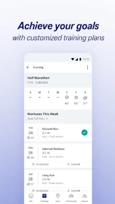 • Custom Training Plans: Train for your next race with a personalized training plan–from a 5K, 10k, half marathon or a full marathon.