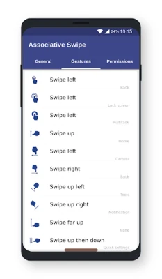 - Swipe up - Swipe left - Swipe right - Swipe up left - Swipe up right - Swipe far up