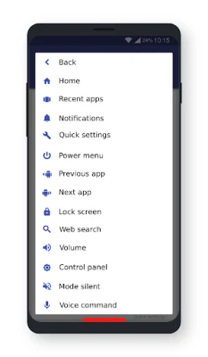 - Voice command - Launch camera - Launch web browser - Launch assistant - Launch app - Apps panel