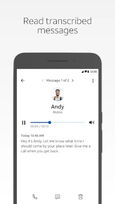 Note: Receiving voicemail on this app does not count against your data rate plan allotment while on the AT&T network. A cellular data or Wi-Fi Calling connection is required; AT&T Visual Voicemail does not work on a Wi-Fi only connection. International data and messaging charges apply to receiving, replying to, and forwarding voicemail messages while roaming internationally. Data and messaging used in replying to and forwarding voicemail messages via SMS, MMS, or e-mail are counted against your data and/or messaging plan, and applicable charges apply if data and/or messaging plan limits are exceeded. Data charges may apply when downloading this application or using text transcription. This app may send a free one-time SMS to AT&T to retrieve mailbox information.