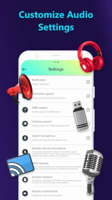 The Audio Output Switch app will assist you in enabling and switching your audio output to headphones, speakers, or other output devices. The other output device supports Cast, Bluetooth, and USB.