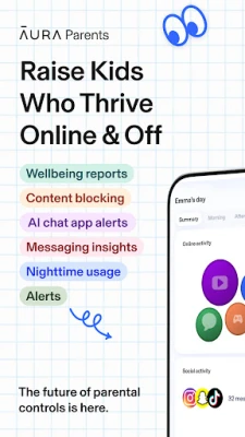 Aura Parents is a next-generation parental control app built to help families guide their children’s digital habits and ensure kid safety across all devices. It combines screen time control, online safety monitoring, and AI-powered wellbeing tools — so you can help your child thrive online and offline.