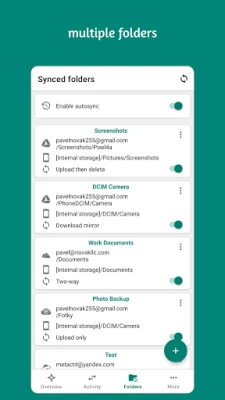 Autosync is an automatic file sync and backup tool. You choose which folder in your device should be synced with which folder in your cloud storage account, and how. Autosync will then keep files in these two folders in sync with each other, automatically and without any additional efforts from the user.