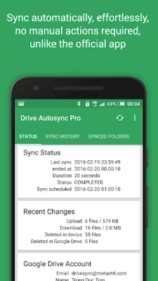 This app is an automatic file sync and backup tool. It lets you automatically synchronize files and folders with Google Drive cloud storage and with your other devices. It is an ideal tool for photo sync, document and file backup, automatic file transfer, automatic file sharing between devices,...