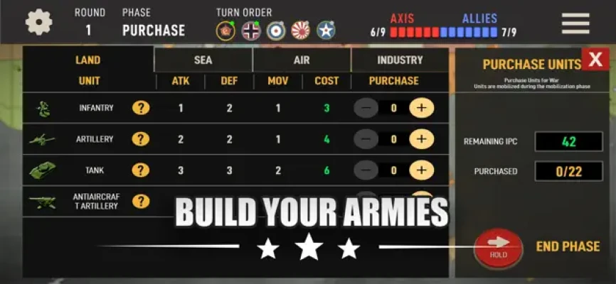 - Axis: Take control of Germany or Japan’s armies & prepare for battle!