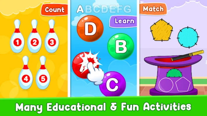 We are specially design the games for kids that's why all the content are kids friendly as well as secure for your kids. Your kids will be engage for an hours with this learning apps for toddlers.