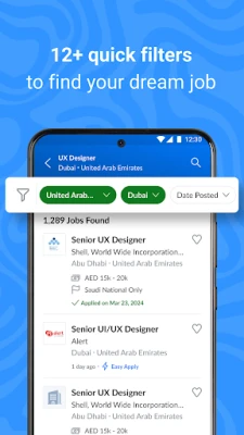 The app helps you discover Middle East jobs across cities such as Dubai, Abu Dhabi, Riyadh, Jeddah, Doha, Kuwait City, Manama, Muscat, Amman, and Cairo. With powerful filters and smart recommendations, you can:
