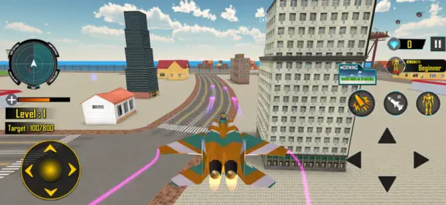 Enjoy futuristic robot war in a new bee robot game where you will enjoy robot transformations into bee robots and cars. This bee robot game encloses a lot of challenging missions to fight against evil robots and AI-driven shooting cars roaming in the city. You have to tackle the war against enemy drones and spaceships as well. Mini-map will help you locate your targets. Pickup gems to unlock exciting robot powers. Health pickup will increase your robot life. Let’s practice your shooting skills and level up your strength in this robot game.