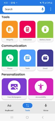 The Big Keyboard: Easy Phone allows you to customize your keyboard size making texting easier with just a few clicks. It offers other helpful tools, such as a built-in magnifier to help you read small print, whether it's on a menu in a dimly lit restaurant or elsewhere. You can also easily access display and accessibility settings and enjoy free wallpaper options to personalize your phone.