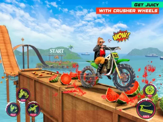 CRUSH MODE: Tracks are filled with various objects that can be crushed under the wheels of a bike. Use crushing bike wheels to destroy as much as possible.