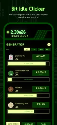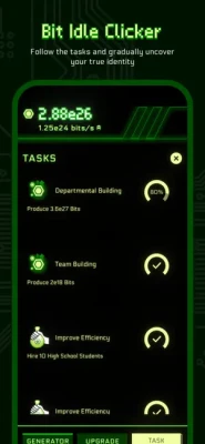 "Bit Idle Clicker" is a casual idle clicker game where players earn in-game currency (bits) by clicking and purchasing various upgrades. The game is set in a science fiction background, where the protagonist wakes up trapped in a locked room and must complete various tasks to escape and uncover the truth. Players can choose different branching storylines to continue playing until they reach the game's ending.