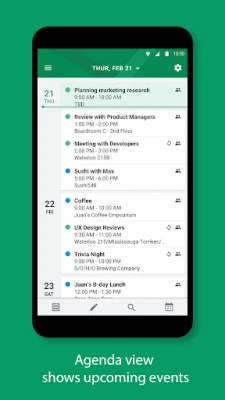 • Sync work and personal accounts for a truly integrated experience. Supports Google Calendar, Outlook.com, Office 365, Microsoft Exchange ActiveSync, and subscribed calendars, amongst others