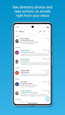 • Directory Photos: Your inbox, calendar and contacts now displays photos from your global address list so you can now enjoy more effective social interactions
