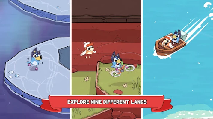 Uncover hidden treasures, solve playful puzzles, and take on delightful mini-quests as you glide, fly, and skate through each level. Interact with quirky characters and help little lost critters return to their homes. Search near and far for goosefood and beads to unlock new moments in the adventure as you keep Bluey moving onwards in her quest.