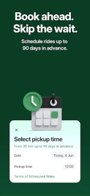 Need an airport transfer or an early morning ride? You can schedule your trip in advance from 30 minutes to 90 days before your expected pickup time.