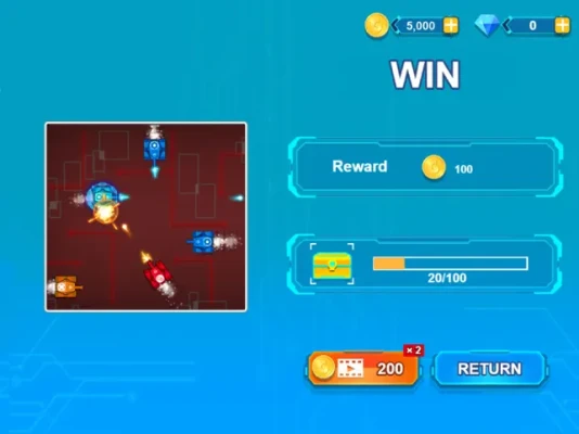 Tank war is imminent!One minute per game, return to the battlefield of iron and blood.The direction key controls the direction of the tank, and the right hand long press to fire.Use flexible movement to eliminate all enemy tanks while avoiding being attacked by enemy tanks.Game features• Rich and diverse types of tanks, different abilities and attribute bonuses• My bullets will turn and use the rebound to break the enemy's defense line• Complex terrain settings allow you to use terrain to avoid attacks