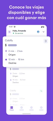 - Conoce el precio del viaje: cuando recibas una petición de viaje, te mostramos el precio estimado del trayecto.