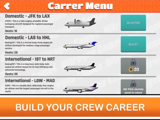 Experience Life at 30,000 FeetEver wondered what it’s like to be part of a cabin crew? Now’s your chance to step into the uniform and take off! Welcome aboard Cabin Crew Simulator, the ultimate role-playing experience where you’re in charge of delivering top-tier service from gate to gate.From short domestic hops to international long-hauls, every flight is a new challenge. Prep the cabin, serve real-time requests, and make sure every passenger lands with a smile.Your Shift in the Sky Starts Here:Choose Your Route: Fly short or long-haul flights to destinations around the world.Prep the Plane: Check seat rows, welcome passengers, and serve & secure them.Serve with Style: Deliver food, drinks, and great service while responding to in-flight needs.Upgrade Your Equipment: Use your earnings to unlock better flight menus and planes and improve yourself.Climb the Ranks: Complete successful flights to unlock new planes and grow your airline career.Every flight is a new opportunity to test your skills, solve problems on the fly, and keep things running smoothly in the air. Whether you're soothing a fussy flyer or racing to finish service before landing, you'll feel the thrill and responsibility of real cabin crew life.Download Cabin Crew Simulator now and take off!
