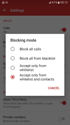 ⇛ Blocking phone numbers which are not in your contact list