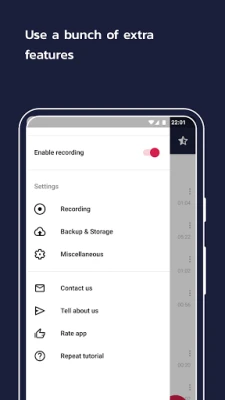 * Overlay (run over other apps) - enables the recording of phone calls and VoIP conversations.