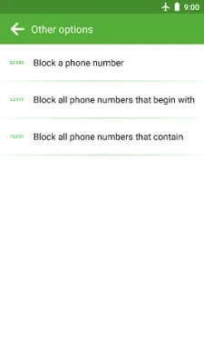 * Block phone numbers using an area code.