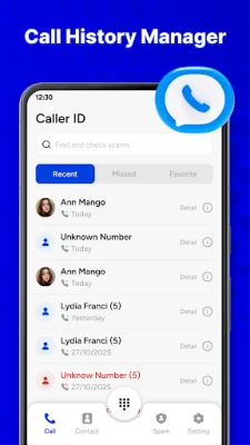 The spam call blocker allows you to block spam calls and scam numbers easily. You can stop repeated spam callers with just one action.