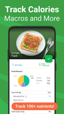 • Track up to 107 nutrients, set custom targets, get the recommendations for optimal nutrition.