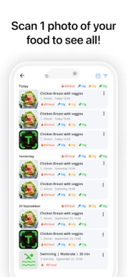 Effortless Logging: Simplify meal tracking with AI-powered features that allow you to log your meals by taking a photo or providing a brief description.