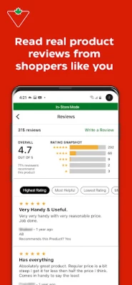 Shop by category or search for products through voice search, keyword search, or barcode scan to find product information. Check price, online and in-store stock, in-store aisle locations, and product ratings and reviews.