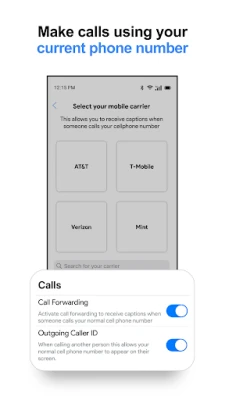 • Caption calls with your current number – Setup call forwarding and outgoing caller ID to make and receive calls from your current number.
