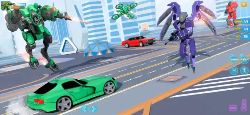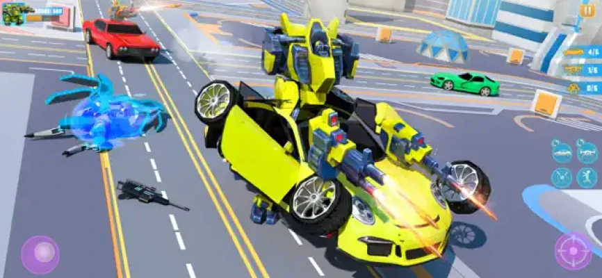 • Battle robot enemies with fighting strength • Experience the car driving and transformation into robot car along with shooting at battle cars. • Excellent in drive and robot shooting experience along high quality 3D graphics.